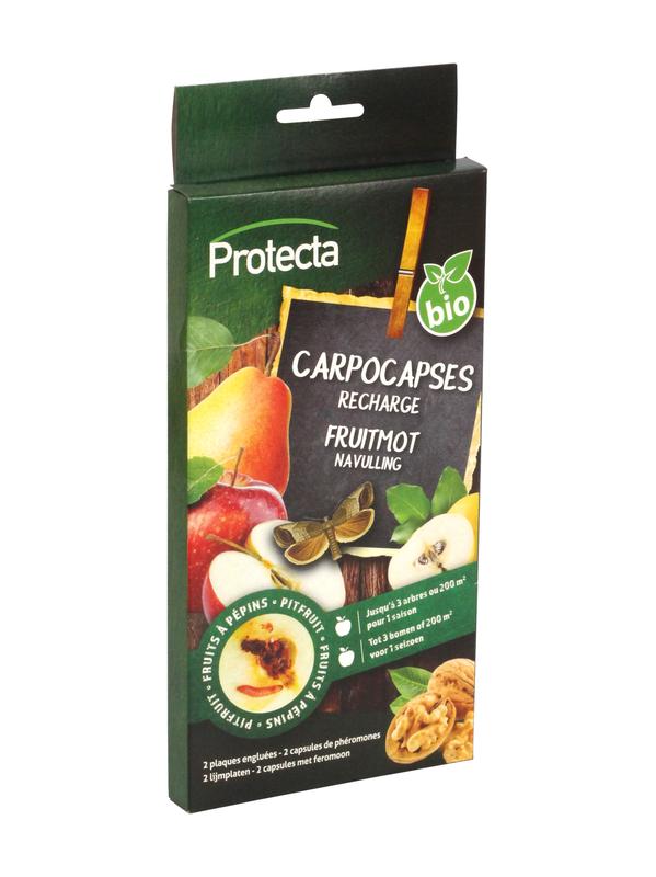 Navulling voor Fruitmot kit feromoonval (AT-PHE-01017) te gebruiken voor de bescherming van pitfruit. De navulling bevat 2 capsules met feromoon en 2 lijmplaten voor gebruik in Delta val. Voor monitoring tot 3 fruitbomen of 200 m².