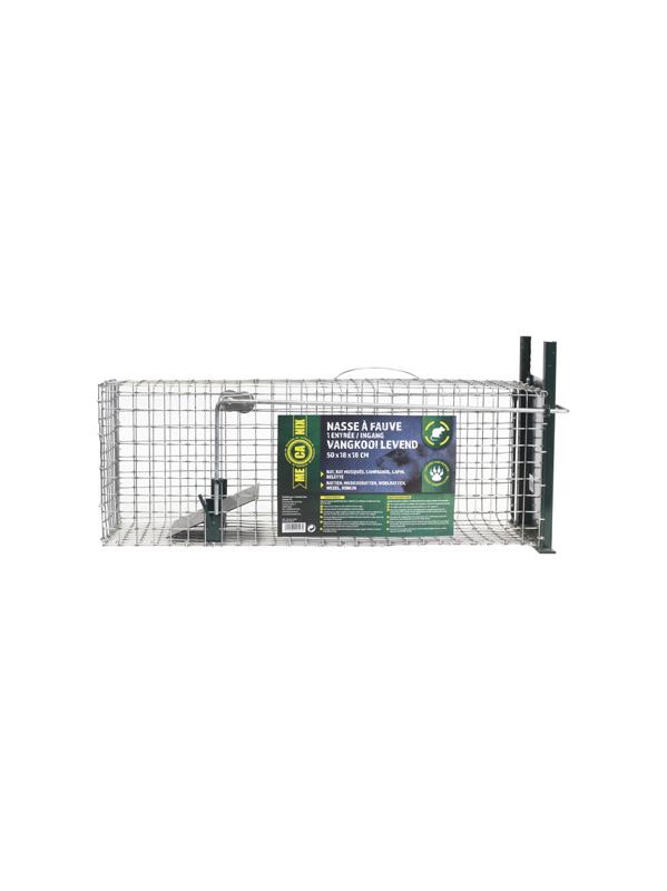Gegalvaniseerde vangkooi om ratten, muskusratten, woelratten, eekhoorns, wezels, konijnen en andere dieren van gelijkaardige grootte levend te vangen zonder ze kwetsen. 50x18x18cm