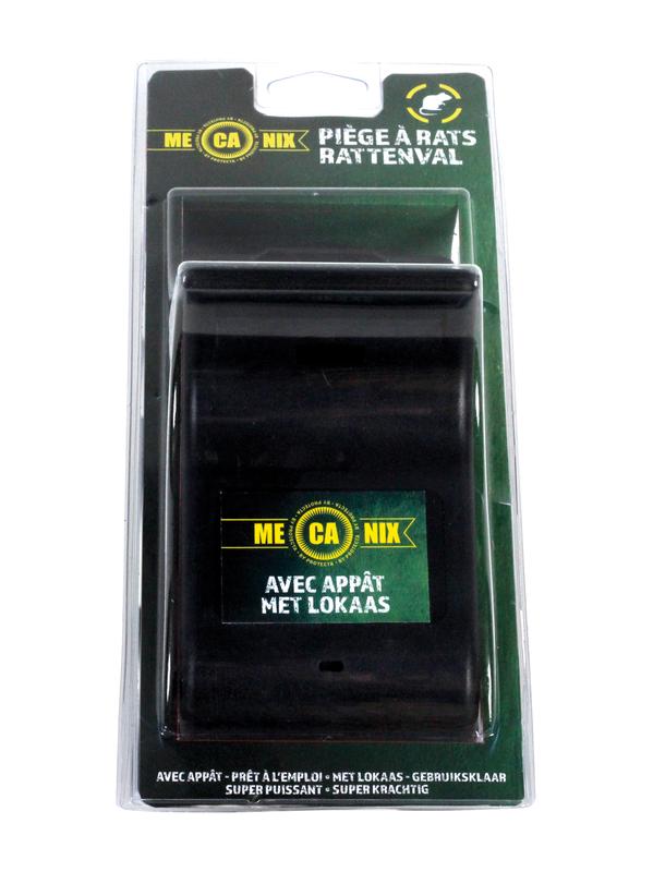 Superkrachtige mechanische rattenval van kunststof. De val spant automatisch op en is klaar voor gebruik vanwege het geïntegreerde lokaas.