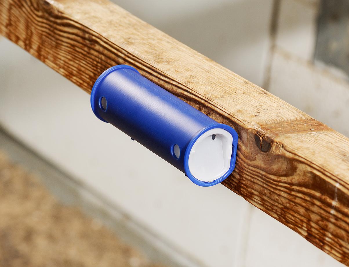 De houder kan met schroefjes in het dierenverblijf worden bevestigd op tactische plaatsen, zoals bij de legnesten van kippen en in de buurt van de zitstokken. In volières kan hij ook in de buurt van de nestjes worden opgehangen en aan de voorzijde van de broedkooien. Naast de schroefbevestiging kunt u hem ook met de montagebandjes aan de kooien bevestigen.